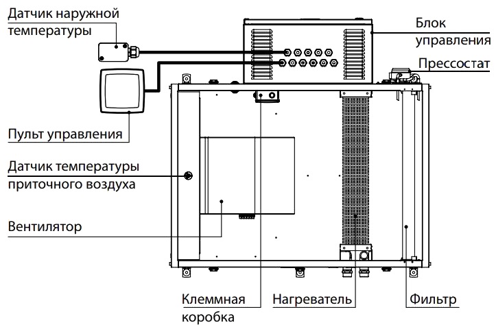 - filtrage entrant et la possibilité de son traitement - chauffage, refroidissement, humidification;