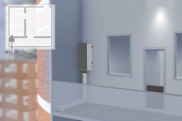 Par conséquent, les diffuseurs d'air d'alimentation sont situés sur la frontière conditionnelle «pièce-environnement», et les hottes dans la cuisine, dans la salle de bain, la buanderie, les toilettes.