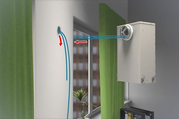 Les 2 premières méthodes sont utilisées lorsque l'air extrait de la rue en hiver et hors saison est beaucoup plus bas que la température ambiante et que la pression et l'humidité de l'air à l'extérieur de la fenêtre sont plus élevées.