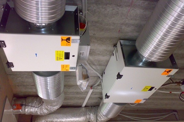 Au premier stade, l'apport d'air froid de l'environnement et l'extraction d'air chaud de la pièce. Des deux côtés, l'air passe par un système de nettoyage.