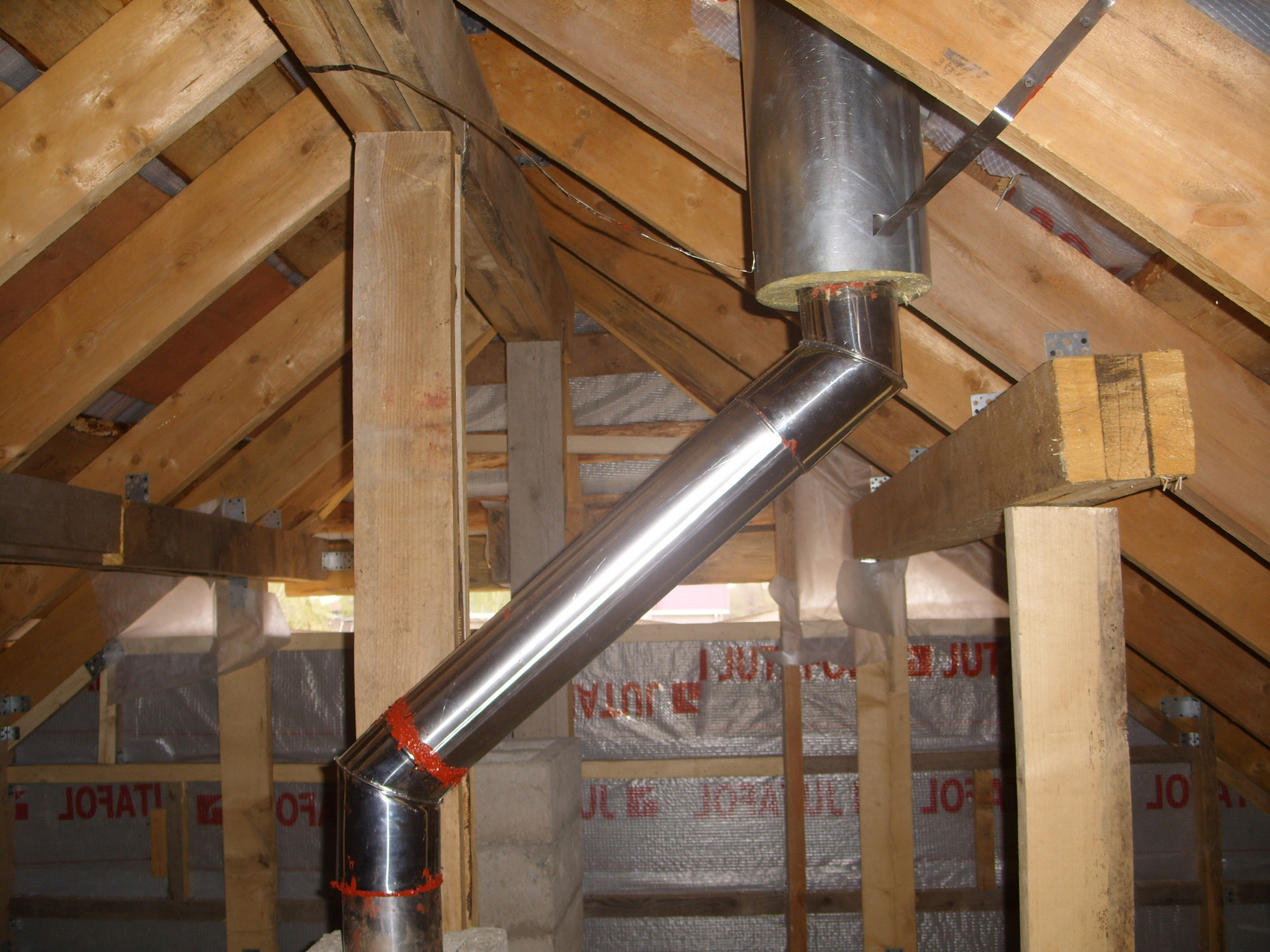 - le plus souvent, un tuyau sandwich est monté dans une section passant dans le grenier ou dans d'autres pièces non chauffées;