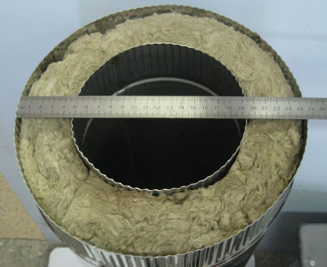 Il convient de noter que la laine de basalte, utilisée pour l'isolation des tuyaux sandwich, peut résister à des températures allant jusqu'à 1115 ° C. En même temps, c'est une substance incombustible et fond quand une température élevée est atteinte. Il n'est donc pas surprenant que les «sandwichs» soient si populaires dans la construction de cheminées.