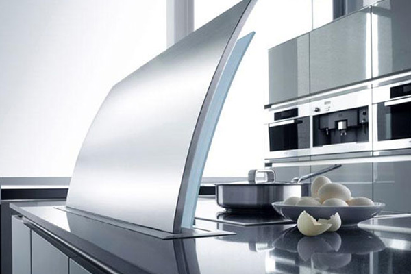 Seul un panneau de 40 mm de hauteur reste en vue, et le bloc moteur entre dans le placard du meuble cuisine. Le niveau de bruit peut varier légèrement, mais les options de contrôle sont: un ancien curseur, bouton, toucher ... et avec des cristaux Swarovski pour les hipsters =) Ce modèle était en Krona en 2010.