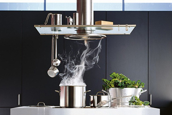 Un phénomène courant dans la cuisine est une hotte aspirante puissante avec un conduit d'air. C'est elle qui est capable d'évacuer rapidement l'air d'échappement de la pièce, empêchant sa propagation dans les pièces adjacentes, à condition le bon choix de puissance.