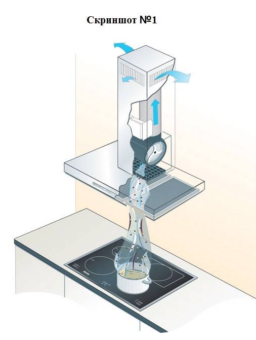 Le passeport de votre hotte contient obligatoirement la rubrique «Installation», qui contient les schémas de «l'organisation des chemins» pour le retour de l'air purifié - je vous conseille de le travailler. S'il n'y a pas de passeport, voir la capture d'écran n ° 1 pour le commentaire, qui donne une idée générale du schéma de recirculation de l'air.