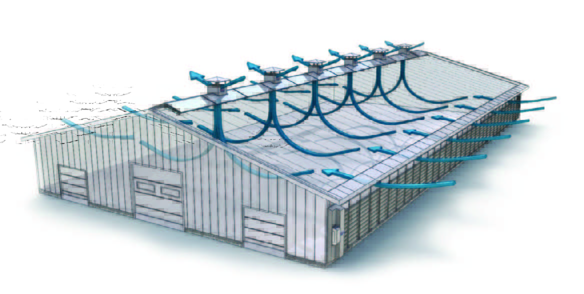 Ce type, par rapport à la ventilation forcée, peut réduire considérablement les coûts énergétiques pour le conditionnement de l'étable. Étant donné que le système d'échappement artificiel n'est connecté qu'à des températures plus basses.