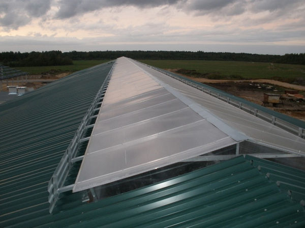 L'équipement est en polycarbonate cellulaire translucide. Montez le patin sur le toit. Il améliore l'échange d'air et l'éclairage intérieur.