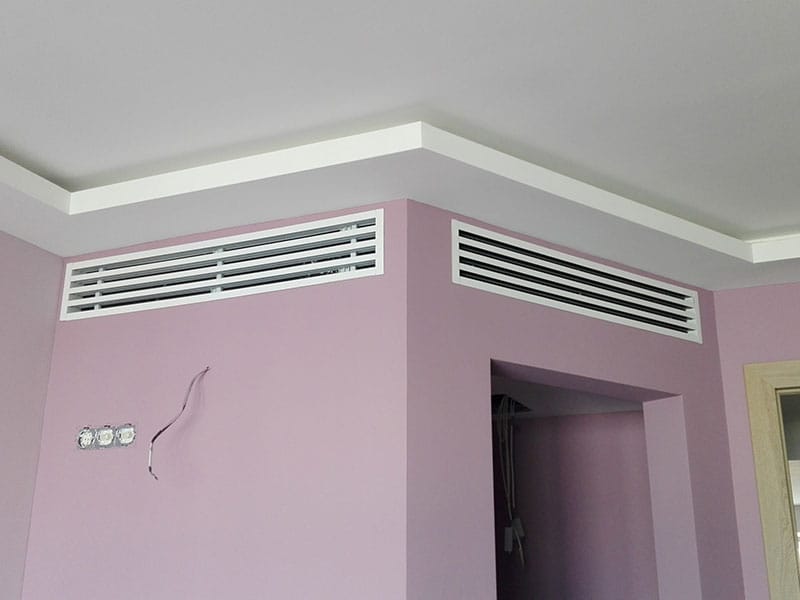 Dans de telles pièces, pour l'organisation d'un mouvement normal de l'air pendant la ventilation naturelle, il sera nécessaire d'installer un système de conduits d'air et des ouvertures entre les murs. Grâce à ces ouvertures, l'air des autres pièces peut entrer et circuler à l'intérieur du dressing.