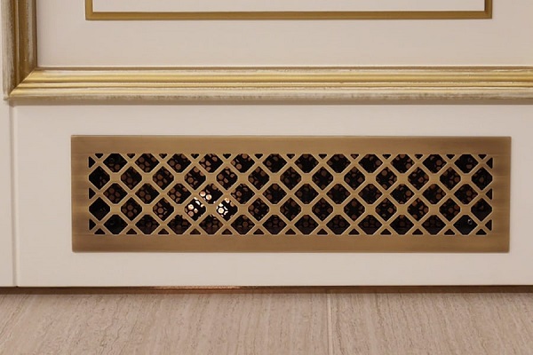 - Armoire d'angle. Pour cette option, le montage de la ventilation est une opération assez compliquée. C'est pourquoi des ouvertures de ventilation spéciales doivent être prévues dans les parois arrière ou latérales de l'armoire. Il est conseillé d'intégrer en plus des grilles de ventilation décoratives dans les portes de ces armoires.