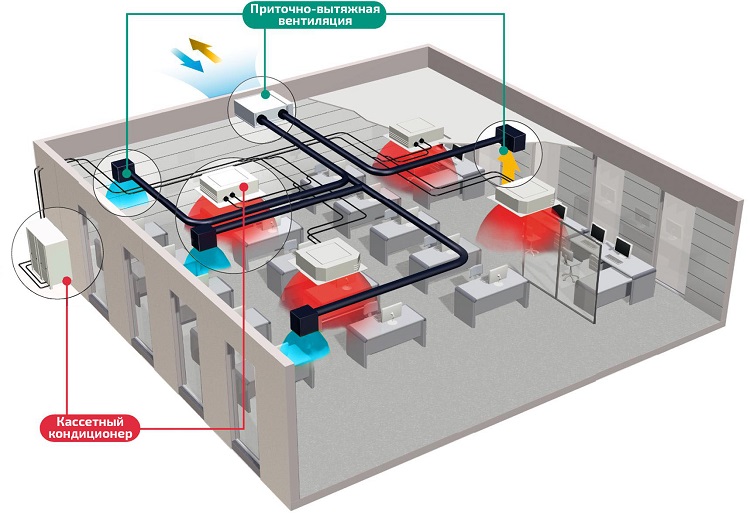 - alimentation et échappement ventilation - la solution la plus populaire pour équiper toutes sortes de bureaux;