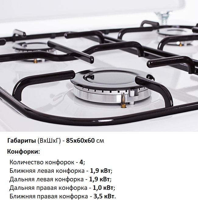 Dans le calcul ci-dessous, à titre d'exemple, les caractéristiques de la cuisinière à gaz du fabricant slovène Gorenje (modèle GI633E35WKB) ont été utilisées. Notez que la marque et le modèle de la plaque sont choisis arbitrairement.