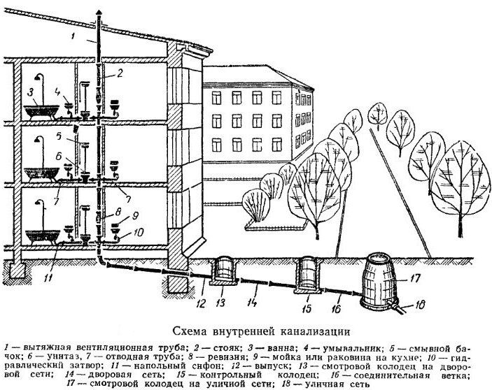 L'élimination des odeurs désagréables d'égout est également nécessaire pour un séjour confortable dans les immeubles d'habitation. Le système de "ventilation" du système d'égouts est simplifié au minimum: les gaz sont évacués par la même colonne montante que les égouts.