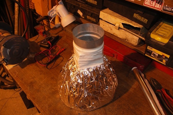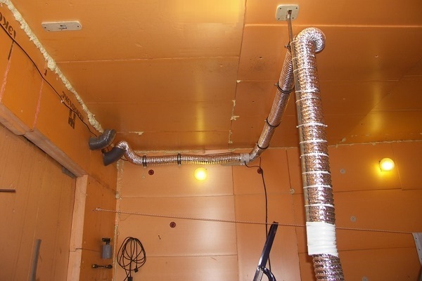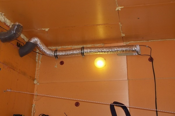 De plus, le canal du conduit doit être enveloppé d'un matériau isolant et s'assurer qu'aucune humidité ne pénètre dans l'isolant. Il n'y a pas beaucoup de chaleur de la lampe à incandescence, elle peut ne pas être suffisante pour toute la longueur du tuyau d'échappement et l'air se refroidira rapidement.