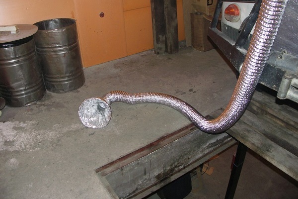 L'air évacué est aspiré par un tuyau d'échappement, dans le conduit duquel est installé un ventilateur de puissance suffisante.
