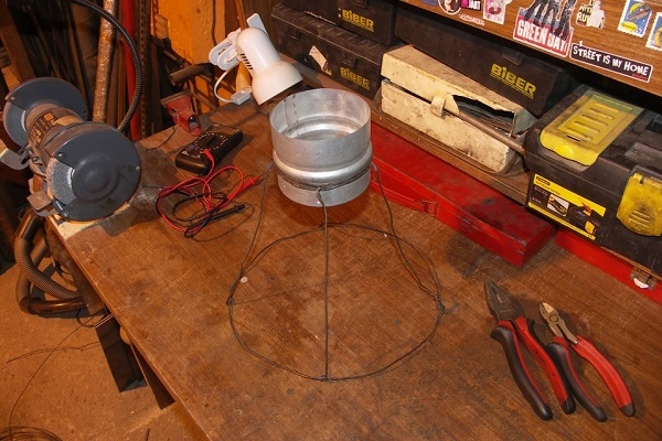Il suffit de suspendre sa cartouche sous l'ouverture du conduit d'échappement vertical et de la laisser allumée. La chaleur générée par la lampe est suffisante pour le mouvement de l'air à une vitesse de 0,2-0,4 m / s.