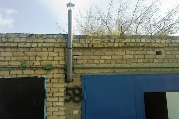 Sans utiliser d'outils mécaniques pour améliorer l'échange d'air, il existe deux façons d'obtenir une mise à jour de l'atmosphère stable dans la salle de garage - en chauffant le tuyau d'échappement et en installant un déflecteur dessus.