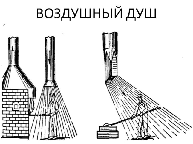Il s'agit d'une sorte de douche à air dont la tâche est d'injecter de l'air frais à un endroit fixe et d'abaisser la température dans la zone d'entrée. Il est utilisé dans la production, où les travailleurs sont exposés à des températures élevées et à une énergie rayonnante avec une intensité de plus de 300 kcal / m² par heure, rayonnée par des fours de chauffage et de fusion.