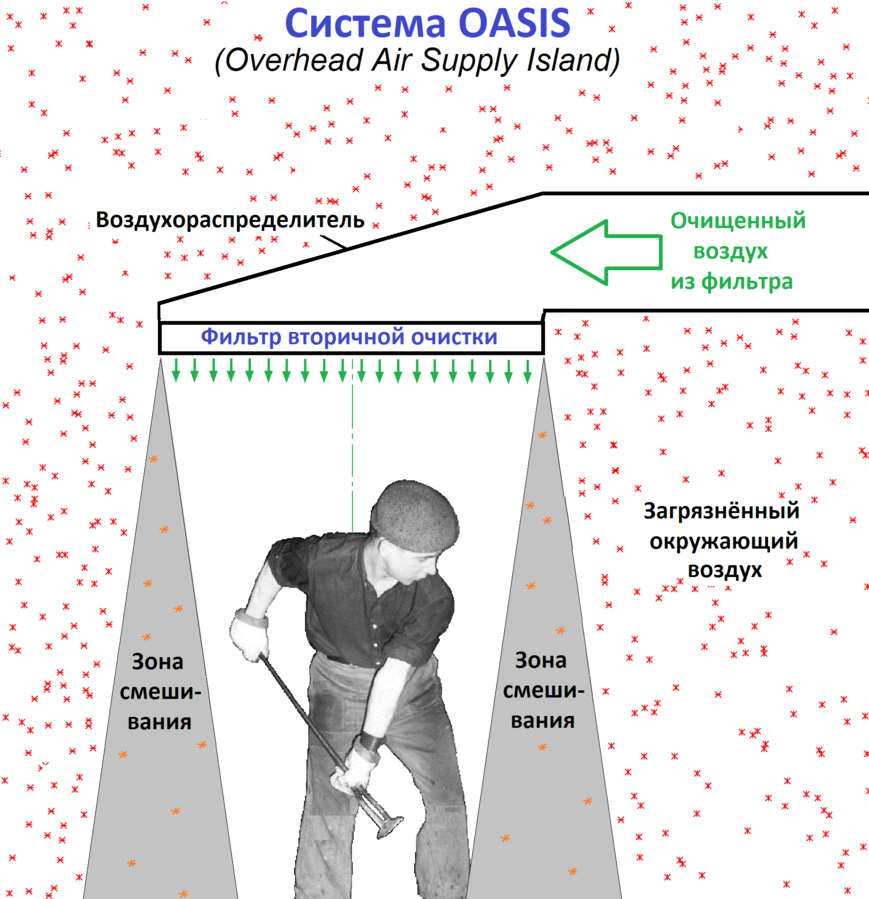 Il est utilisé lorsque les processus de production s'accompagnent de dégagements de chaleur importants contenant une petite quantité de substances nocives. L'air propre entrant dans les conduits d'air est distribué sur le lieu de travail grâce à l'utilisation de buses de distribution.
