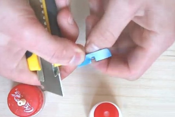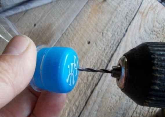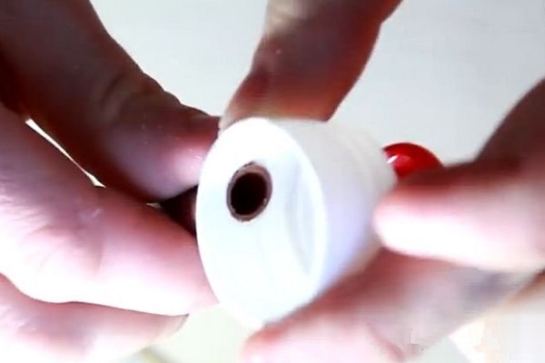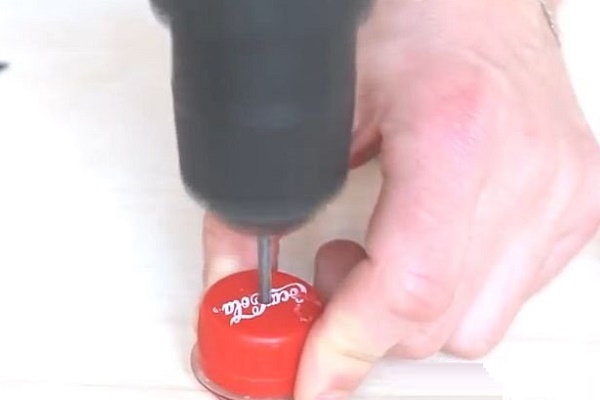 Tout d'abord, il est nécessaire de former le corps de la structure. Pour ce faire, prenez le capuchon en plastique et, à l'aide d'un couteau, d'un poinçon, d'un fer à souder ou d'une perceuse, faites-y deux trous.