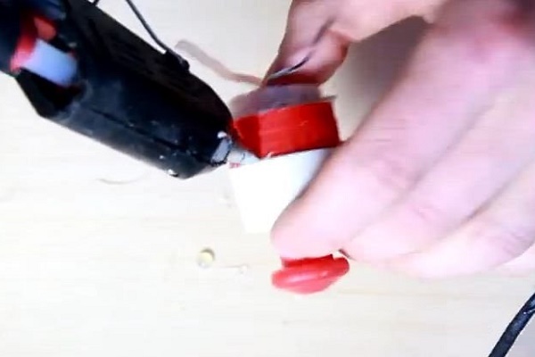Ensuite, nous formons un bloc dans lequel le micromoteur sera situé. Pour ce faire, placez le capuchon sans fond sur le micromoteur et collez-le avec de la colle silicone afin qu'aucune fissure ne se forme.