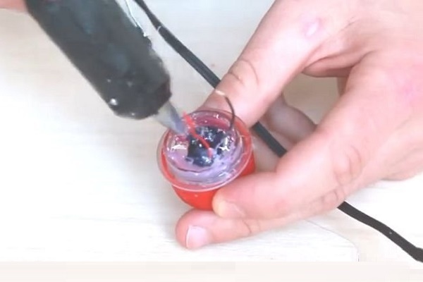 De plus, après le séchage de la colle, il est nécessaire de faire passer les fils à travers le troisième couvercle avec de petits trous, puis de coller le corps, de sceller les espaces avec de la colle au niveau des joints et de la zone où se trouvent les fils. Ensuite, vous devez attendre que la structure sèche.