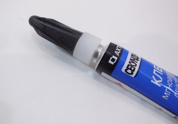 Pour coller le tuyau et le corps, il est nécessaire d'appliquer une fine couche de super-colle sur la surface du couvercle dans la zone du trou, puis de mettre le tuyau en place.Les trous doivent coïncider les uns avec les autres, les parties du trou de tuyau ne doivent pas dépasser vers l'extérieur.