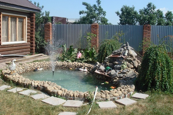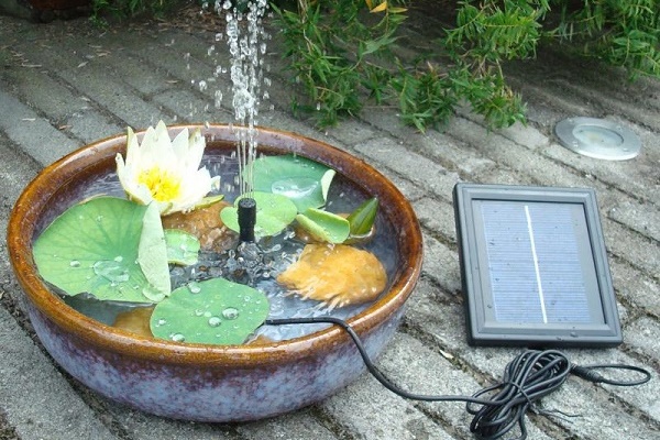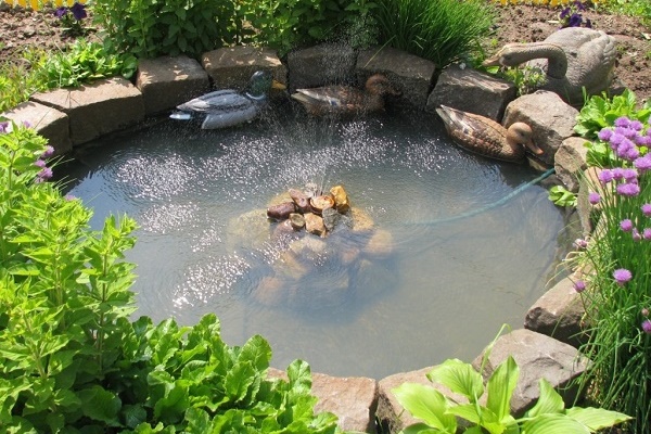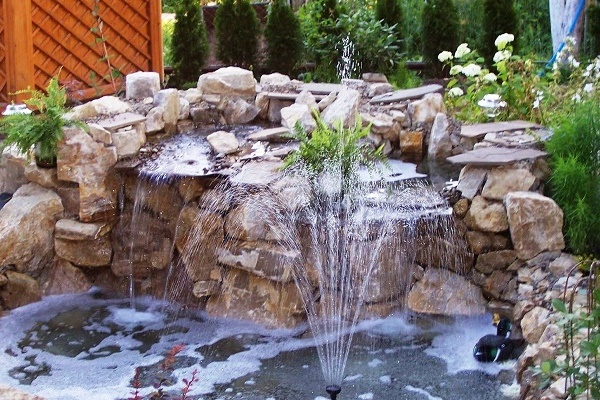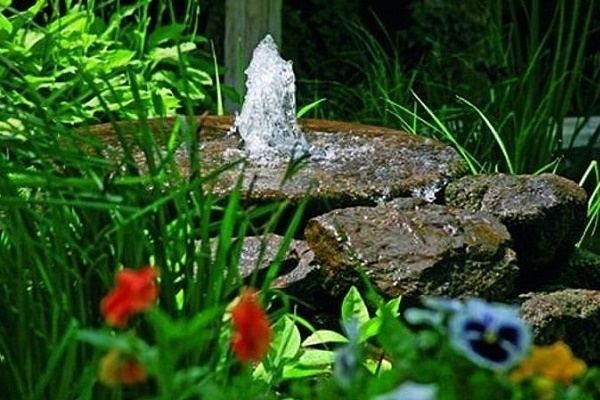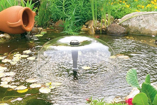 Pour améliorer l'attrait esthétique des petits étangs décoratifs, des piscines et des étangs artificiels, des fontaines sont utilisées. L'élément structurel principal est une pompe à eau, qui pompe la pression, à la suite de laquelle un jet d'eau est fourni à une certaine hauteur.