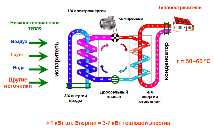 L'énergie est partout, même dans les objets qui nous semblent extrêmement froids. C’est juste que cette énergie a un faible potentiel. Les pompes à chaleur vous permettent de l'extraire de l'environnement et de le convertir en énergie à fort potentiel. Dans cet état énergie thermique peut être utilisé pour le chauffage.