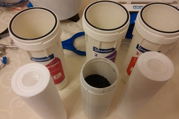 Le deuxième filtre est un filtre à charbon, avec son aide les impuretés organiques et chimiques sont libérées de l'eau, y compris les produits pétroliers, les pesticides, les métaux lourds et d'autres substances. Le dernier filtre devant la membrane d'osmose inverse retient les impuretés mécaniques microscopiques; leur taille ne dépasse pas 1 micron.