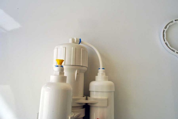 - Ouvrez le robinet à boisseau sphérique qui alimente en eau le filtre à osmose inverse.