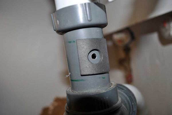 Le point d'insertion doit être à un niveau au-dessus du joint d'eau, c'est-à-dire siphonner. Sur une section verticale ou horizontale du tuyau de vidange, au-dessus du siphon, un trou est réalisé avec une perceuse d'un diamètre de 7 à 8 mm.