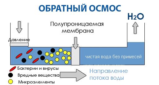 La purification de l'eau par osmose inverse est toujours la plus avancée. Le principe de son travail est similaire au métabolisme d'un organisme vivant. Avec lui, il est possible de débarrasser l'eau de presque toutes les impuretés, virus, bactéries, nitrates, etc.