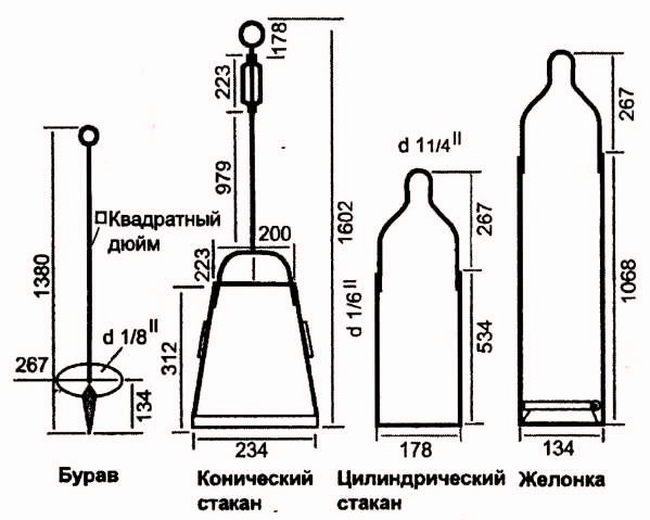 Si possible et nécessaire, deux appâts différents doivent être fabriqués pour les utiliser sur des sols différents. L'écope est également utilisée pour nettoyer le puits fini du sable et de la saleté. Mais dans cette situation, il n'est pas nécessaire de fabriquer un projectile aussi gros, un appareil d'une longueur d'environ 0,8 à 1,0 mètre convient également.