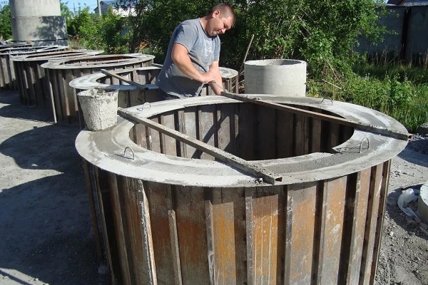 Avant de commencer à faire de vos propres mains des anneaux pour la construction d'un puits, vous devez d'abord fabriquer un moule démontable en métal pour couler du béton ou du coffrage en bois à partir de composants. À la fois cela et un autre sont fabriqués à partir de matériaux improvisés disponibles sur un site ou empruntés à des amis.