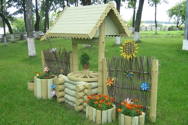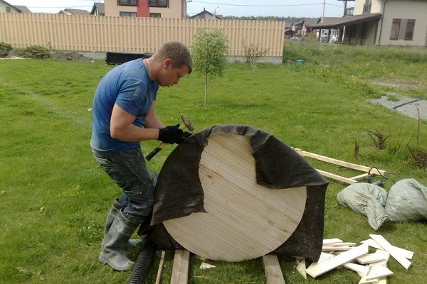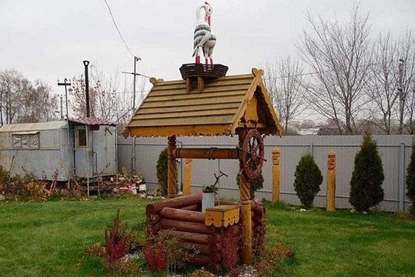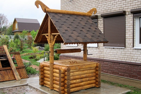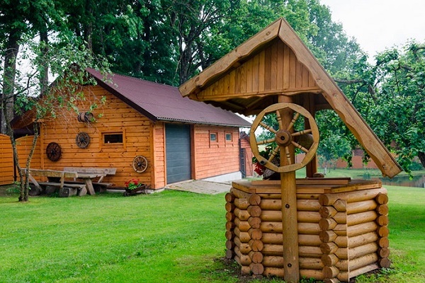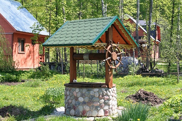 Il y a un an, ils ont fait un puits sur le site, auparavant ils interrogeaient les voisins qui l'avaient déjà fait. Notre terrain est vallonné, j'ai donc dû choisir un endroit moins uniforme. Ils ont fait peu profond, juste pour l'arrosage, donc je n'ai pas dupe avec les pompes, nous utilisons un seau ordinaire. Des anneaux de béton sont construits à l'intérieur de la mine, elle se construit rapidement, et tout est décoré de bois à l'extérieur.