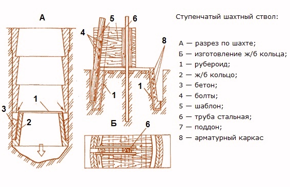 La tâche du constructeur de puits n'est pas seulement d'extraire le sol de la mine, mais également de former les parois du puits. Ils sont construits en pierre, brique, rondins, plaques de bois, bois, béton armé monolithique, coulés dans le coffrage aménagé dans la fosse.
