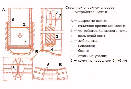 Étapes de la méthode d'abaissement pour la construction d'un puits de mine imparfait: