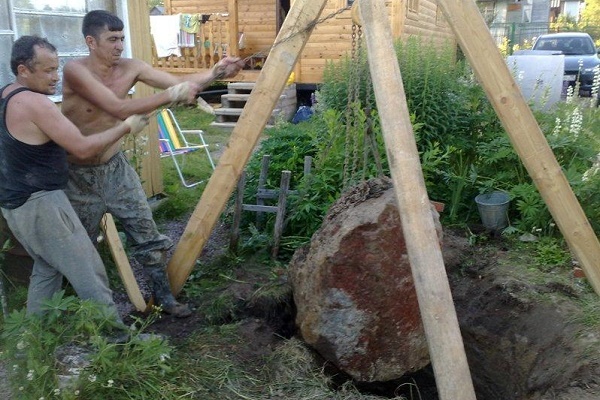 Pour faciliter la procédure de levage du sol de la mine en développement, il est conseillé de fabriquer un trépied et de fixer un bloc à son sommet. Ainsi, la question de libérer le tronc des roches déversées se déplace plus facilement et plus rapidement.