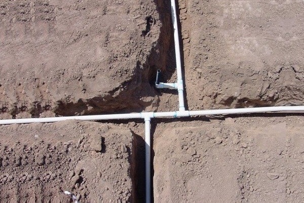 L'excavation de tranchées est effectuée avec une pelle ordinaire, creusant la profondeur - pas plus de 80 cm.Les tuyaux préparés sont posés avec une pente vers le puits, la pente doit être d'au moins 3 cm pour 1 mètre linéaire de la canalisation. Les connexions sont effectuées par des raccords filetés ou par soudure.