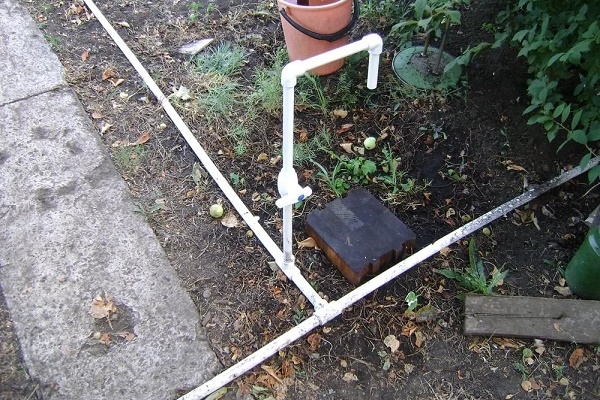 Quiconque n'est pas intéressé par les problèmes de montage et de démontage choisit l'option permanente - un système d'alimentation en eau enterré dans une tranchée à faible profondeur (0,5 m - 0,8 m). Il n'y a aucun but de protéger la structure contre les effets du gel hivernal, car à la fin de la saison, l'eau est évacuée par des robinets spéciaux installés aux points inférieurs. Pour cela, les tuyaux sont posés avec une inclinaison vers la source.