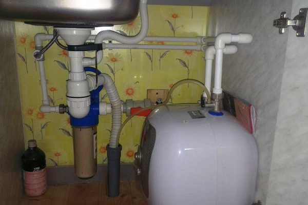 - à l'intérieur de la maison - installation d'équipements de plomberie, raccordement de l'accumulateur;