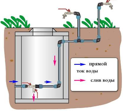 Idéalement, lors de la décharge, l'eau devrait retourner dans le puits ou dans le trou de drainage équipé à proximité. Si vous oubliez la procédure de vidange, au printemps, vous pouvez rencontrer des problèmes - l'eau gelée cassera les tuyaux et les joints et l'alimentation en eau devra être complètement remplacée.
