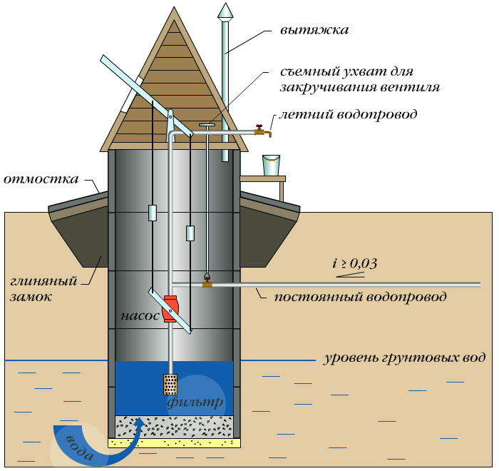 L'installation de l'eau d'été du puits: les meilleures options et schémas de construction