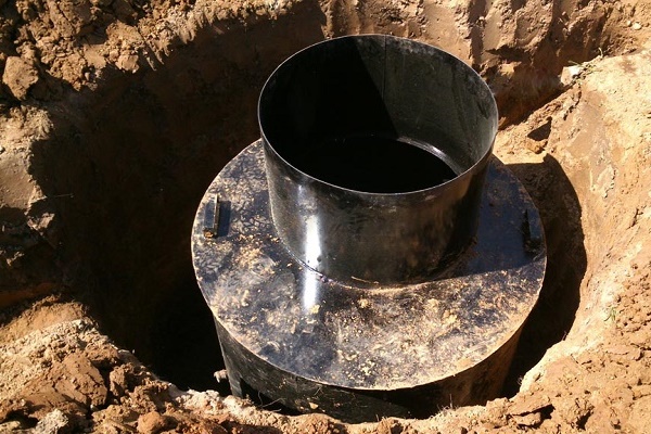 Un autre point intéressant. Il est souvent recommandé aux caissons en béton de ne pas fonder. Autrement dit, installez les anneaux directement sur le coussin de sable et le drainage du gravier. La motivation est simple: en cas de condensation, elle ira dans le sol.