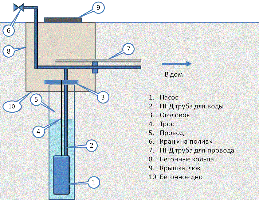 Premièrement, dans ce cas, il est nécessaire que la sortie du puits soit dans une pièce chauffée, par exemple, le sous-sol d'une maison. Ceci est nécessaire pour protéger l'équipement contre le gel. Il faut comprendre que le niveau de bruit des appareils en fonctionnement constant sera élevé.