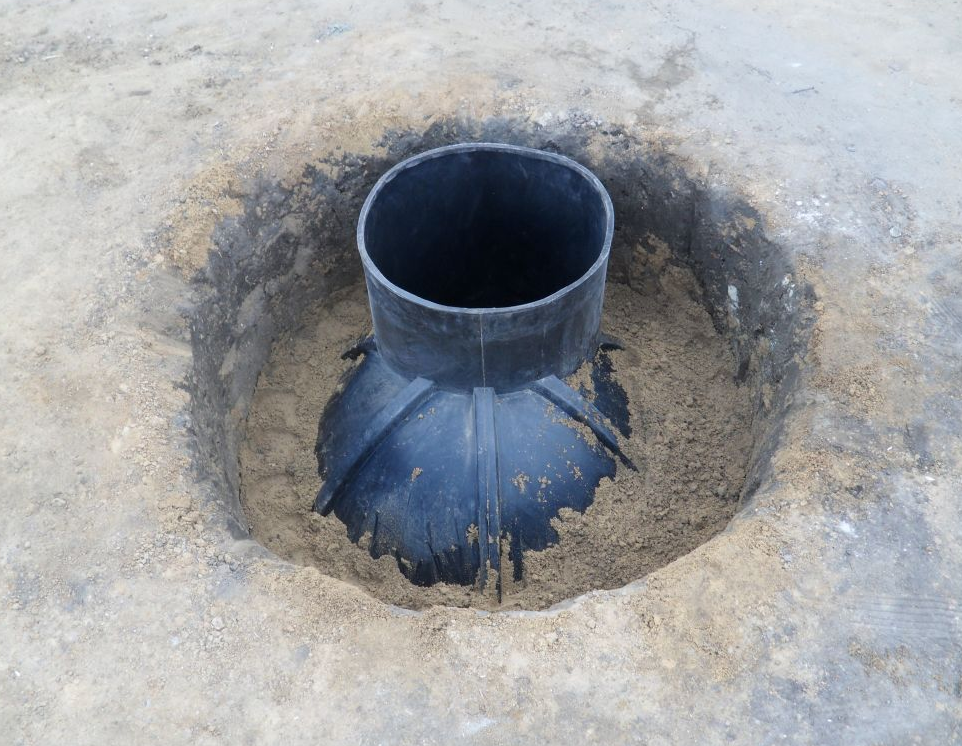 Le tuyau de puits ne doit pas affleurer le fond de la chambre - toujours légèrement plus haut. Dépassement dans un rayon de 40 à 50 cm En cas d'inondation.