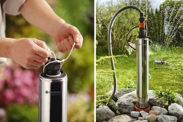 - À l'aide d'un câble solide, une pompe est immergée au fond du puits, ce qui pompera le liquide.