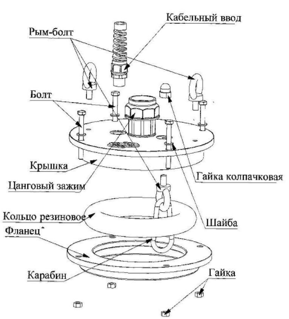 Un boulon à œil est un boulon régulier dont la partie supérieure est réalisée sous la forme d'un anneau. Ces éléments sont utilisés pour suspendre l'équipement, fixer les câbles, etc. Sur la tête, des boulons à œil sont placés sur le dessus pour faciliter le levage du couvercle, et également en dessous pour suspendre la pompe.