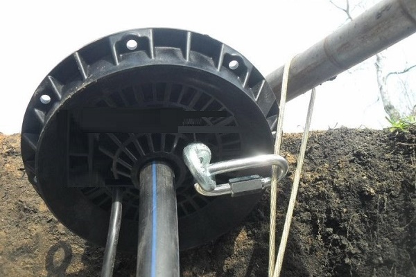 Avant de fixer un tuyau ou un tuyau d'alimentation en eau à la tête, son extrémité inférieure est connectée à pompe submersible.