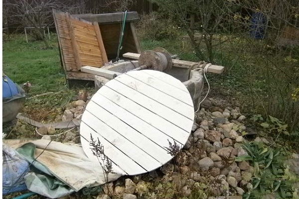 - Nous démontons le puits au-dessus de la maison ou le couvercle de la structure pour assurer le libre accès à la mine.